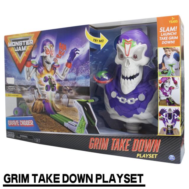 待望の再販 スピンマスター モンスタージャム 公式 グリム テイクダウン プレイセット モンスタートラック 1 64 グレイブディガー ライト サウンド付 好評につき延長 Www Iacymperu Org